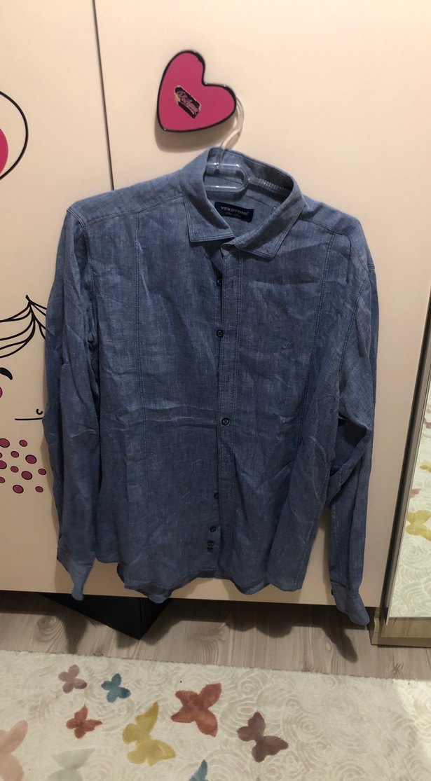 Bu erkek keten gömlek, düğmeli ön, yakalı ve uzun kollu tasarımıyla, rahat kesimi ve lacivert rengiyle günlük sokak stili için uygundur.