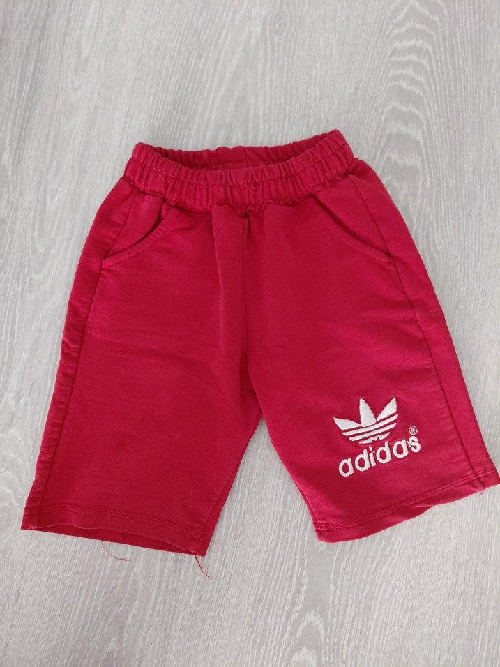 Erkekler için kırmızı Adidas şort, rahat kesim ve lastikli bel bandına sahip, yumuşak ve sıcak kumaştan, günlük sokak giyimi için uygundur.