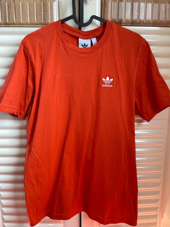 kırmızı Adidas tişört, pamuk kumaştan, bol kesim ve yuvarlak yaka ile rahat bir kullanım sunar. Spor ve streetwear tarzını yansıtır.