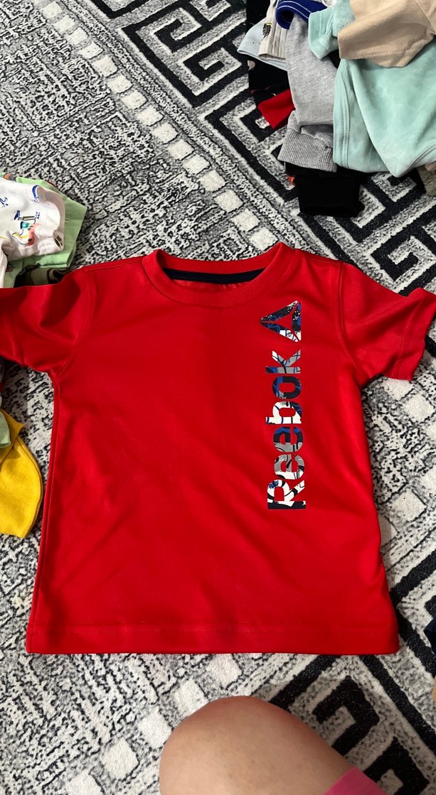 Kısa kollu, bisiklet yaka ve baskılı Reebok logosu olan kırmızı renkli, sentetik kumaştan yapılmış erkek çocuk tişörtü. Orijinal üründür bir kere giyildi