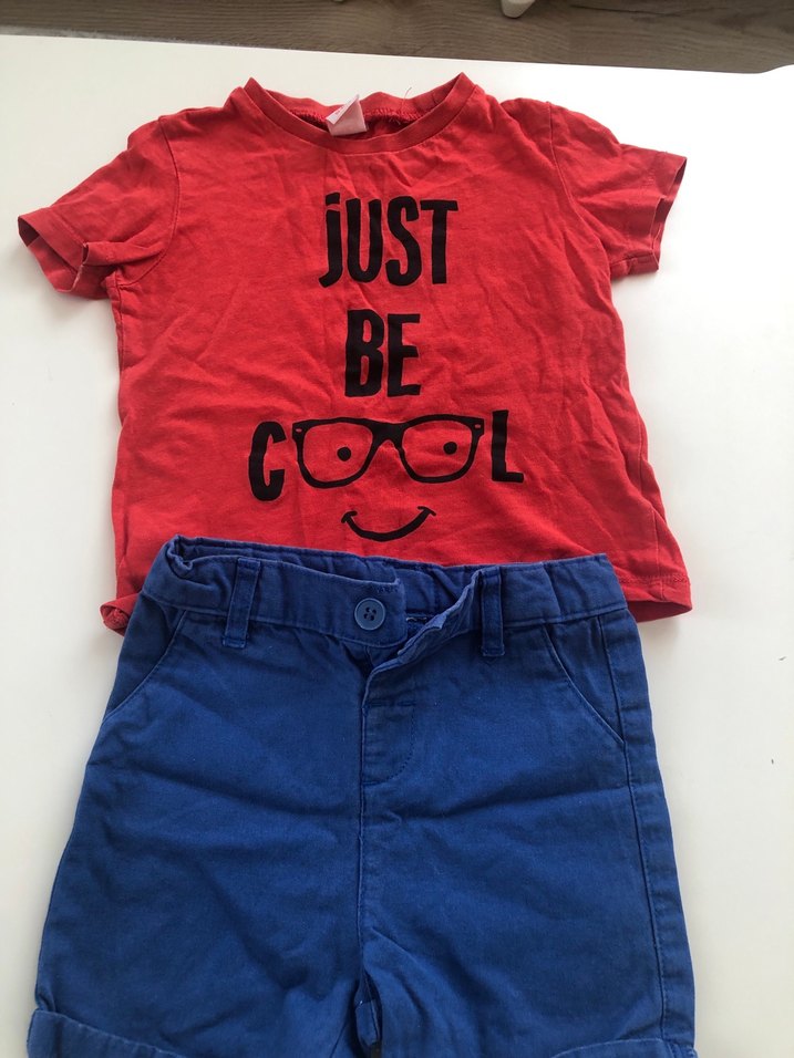 Erkek Kırmızı Baskılı Kısa Kollu Tişört-lacivert şort