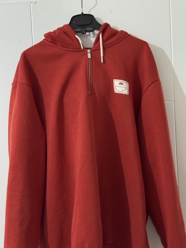 Koyu kırmızı renkte, fermuarlı, kapüşonlu, uzun kollu erkek sweatshirt. Yumuşak kumaştan, bol kesim ve günlük rahat kullanım için uygundur. ✨