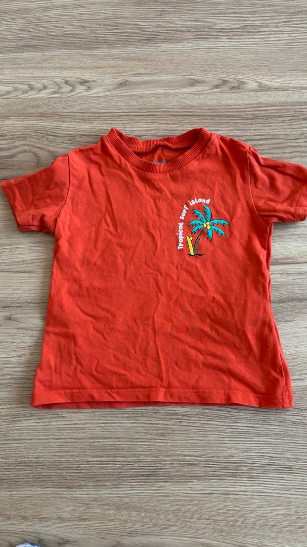 Bu erkek kırmızı tişört, kısa kollu, yuvarlak yakalı ve bol kesimdir. Yumuşak pamuktan üretilmiş, tropikal desenli ve düğmeli detaylara sahiptir.