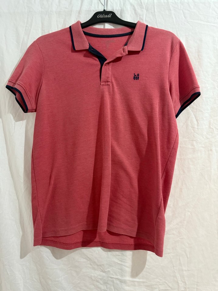 Erkekler için fitted kesim, kısa kollu ve yakalı polo tişört. Düğmeli ve koyu kırmızı renkte, rahat sentetik kumaştan üretilmiştir.