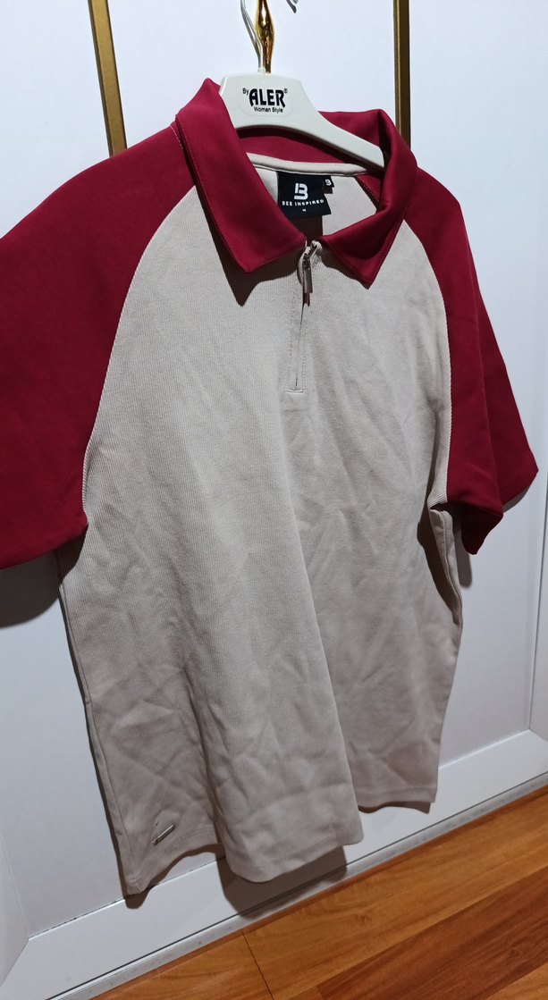 Bu erkek polo tişört, kısa kollu ve yakalıdır. Fermuarlı ön kısmı, kırmızı ve bej renkleriyle rahat ve yumuşak bir kumaştan üretilmiştir. Günlük sokak stili için uygundur. Temiz üründür etiketi yok fakat hiç giyilmedi. Etiketi olmadığı için fiyat uygundur.