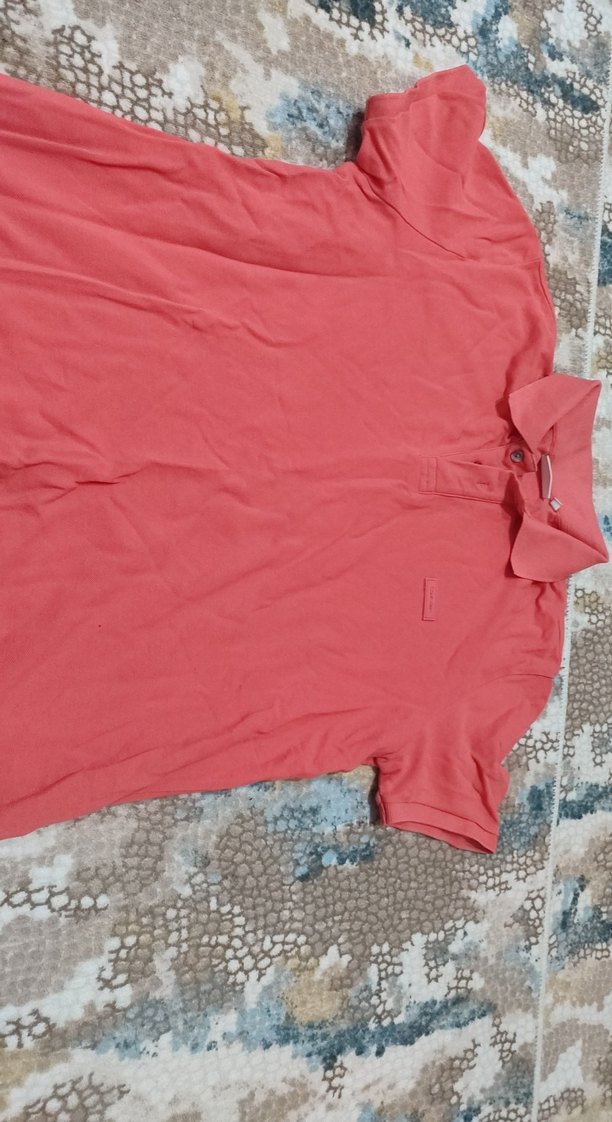 Erkekler için kısa kollu, yakalı ve bol kesim kırmızı polo tişört. Yumuşak sentetik kumaştan, günlük rahat sokak stiline uygun.
