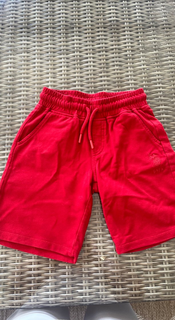 Kırmızı renkte, rahat kesim ve yumuşak, sıcak kumaştan yapılmış şort. Lastikli bel ve yan ceplere sahiptir. 6/7 yaş