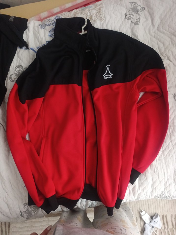 Erkek Kırmızı Siyah Fermuarlı Sweatshirt