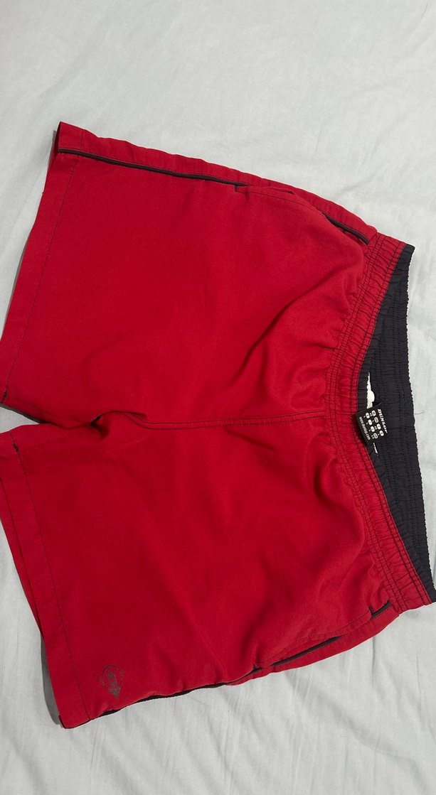 Erkekler için koyu kırmızı, fermuarlı detaylı, normal boyda ve dar kesim spor yüzme şortudur. Spor ve sokak tarzına uygundur.