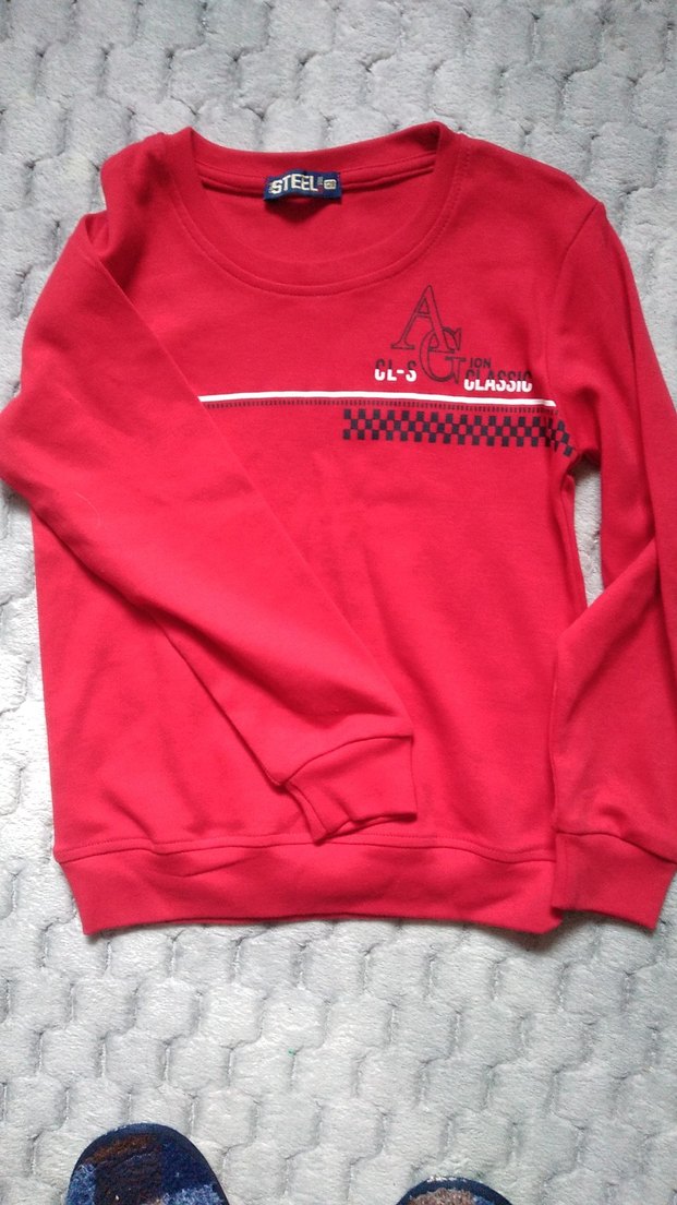Kırmızı renkli, uzun kollu erkek sweatshirt. Yumuşak ve sıcak kumaştan, Renkli baskılı ve örme detaylı. STEEL'e markalı. tahmini 5 6 7 yasa olur hiç giyilmedi hediye geldi olmadı