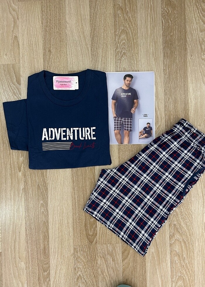Önü baskılı kısa kollu ekose desen şortlu pamuklu kumaş pijama takımı. M XL XXL BEDENLERİ MEVCUTTUR