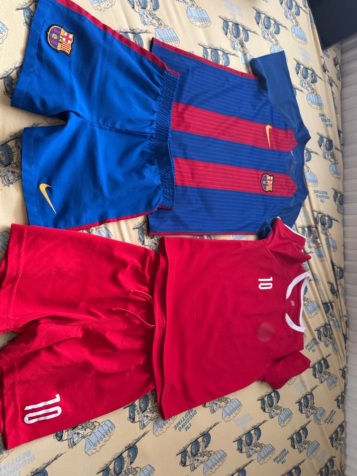 Erkekler için sentetik kumaştan, kısa kollu, renkli kırmızı ve mavi formalar. Bisiklet yaka ve spor ve sokak stili için uygun. ⚽ mavinin sorunu yok H&M marka önündi 10 rakamı yok
