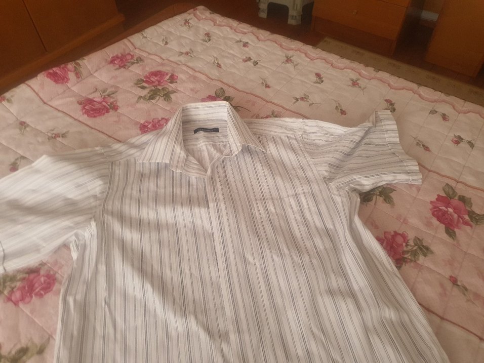 Erkek Kısa Kollu Beyaz Çizgili Gömlek L beden