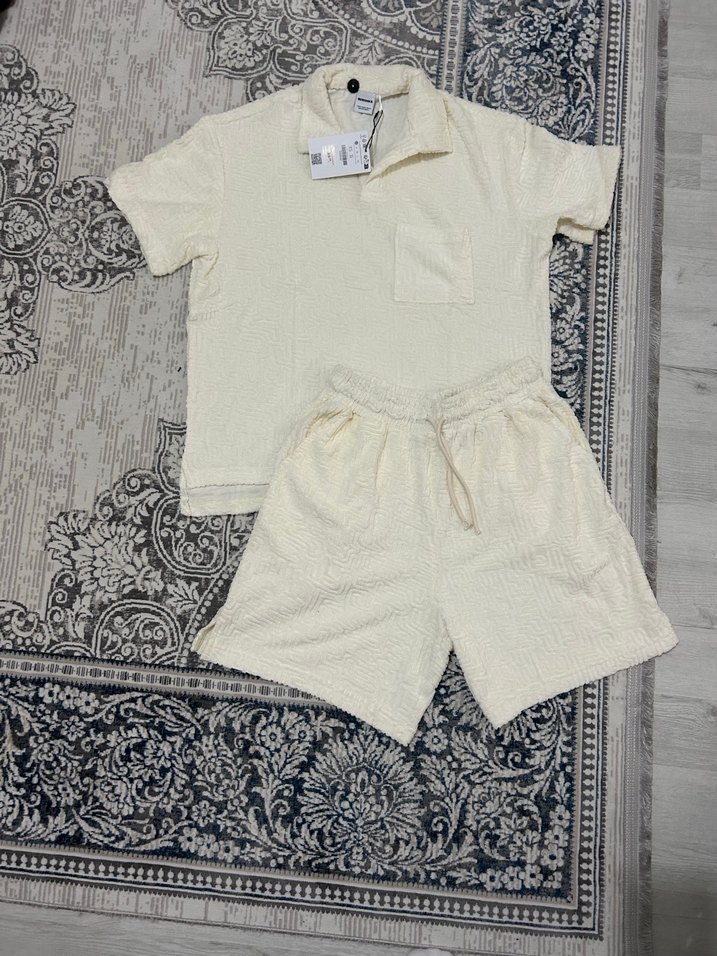Erkekler için kısa kollu, yuvarlak yakalı beyaz mini pijama takımı. Rahat kesimi ve pastel tonlarıyla gündelik şıklık sunar.