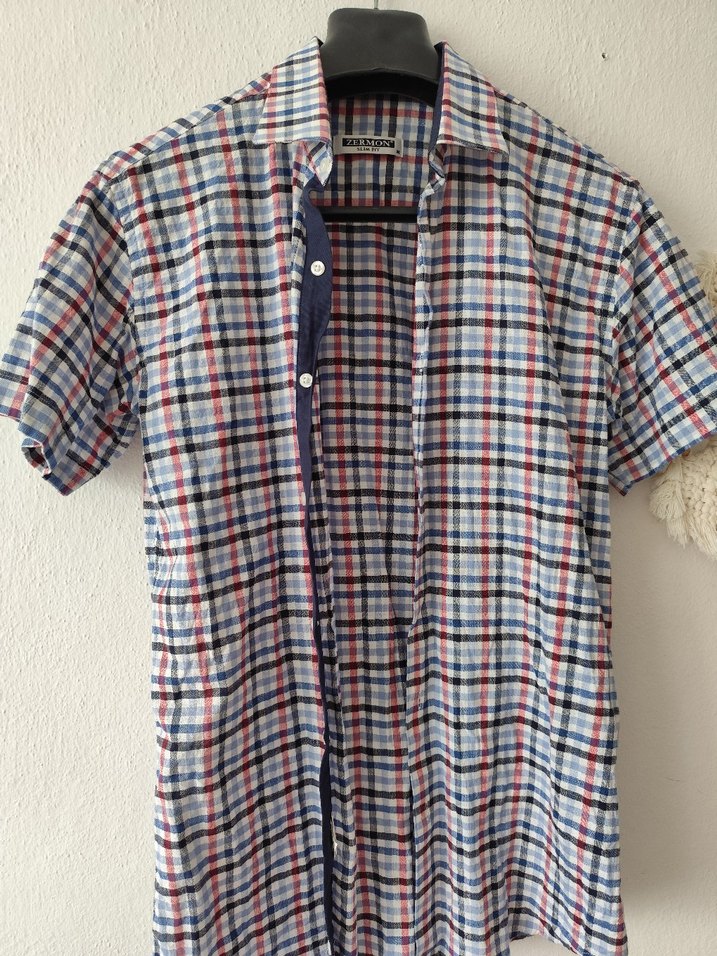 Sıfır ayarında.Erkek kısa kollu, düğmeli pamuk gömlek. Çok renkli kare desenli, regular fit ve yakalı, günlük rahat sokak stiline uygun.