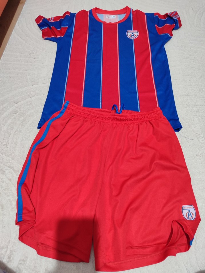 Erkekler için kısa kollu, fitted kesim, kırmızı ve mavi renklerde, plise detaylı spor forması. Sentetik kumaştan üretilmiş, şortları elastik bel ve yan şeritli, sportif ve rahat tarz için uygundur. ⚽12-13 yaş grubu içindir