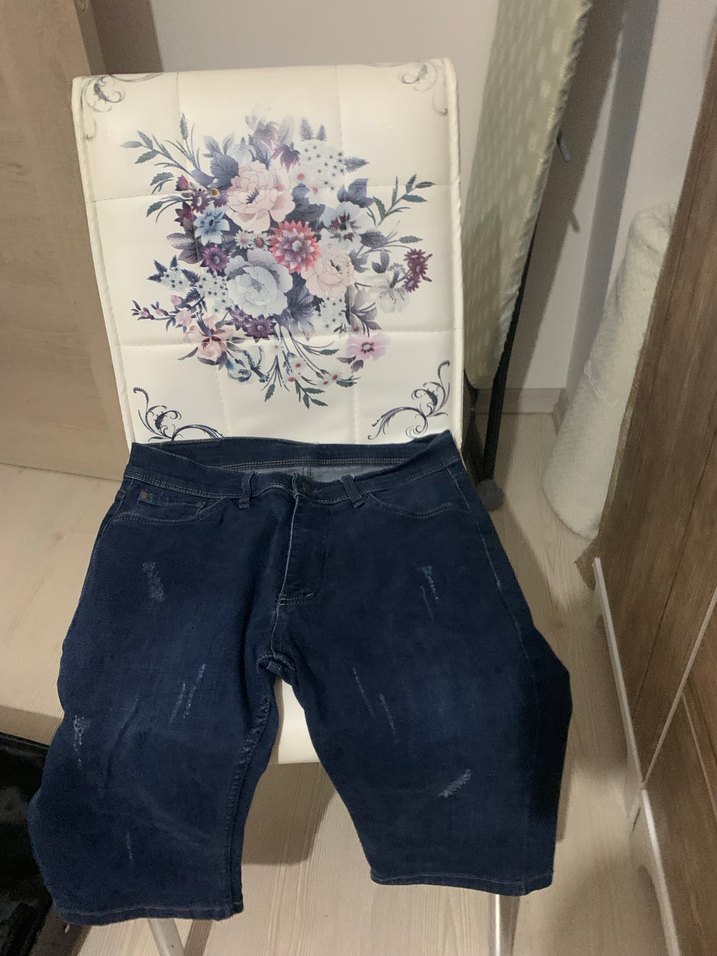 Erkek için koyu mavi denim şort, dar kesim. Günlük sokak stiline uygun,rahat bir model.