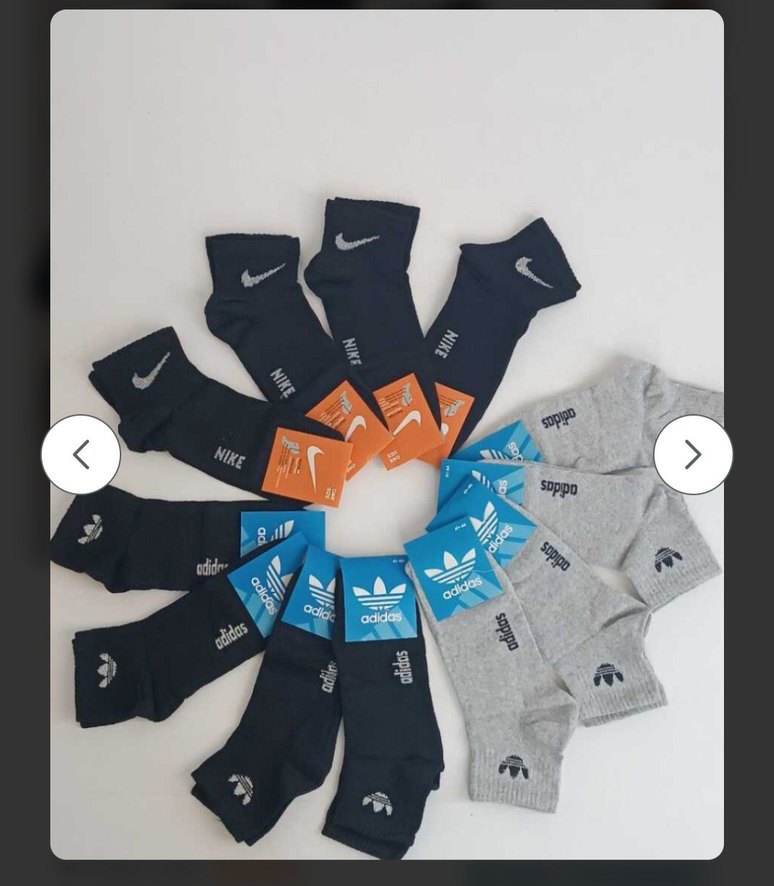 Gri ve koyu tonlarda, baskılı Nike ve Adidas logolu, erkekler için kısa ve dar kesim spor çoraplar. Rahat kullanım sağlar.