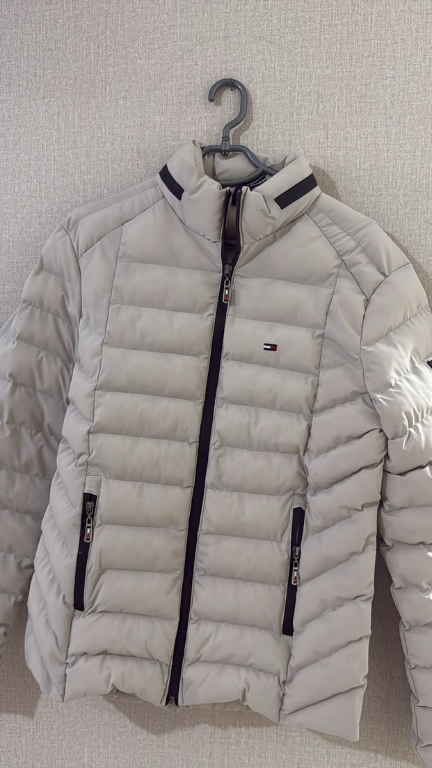 Erkek kışlık mont, dar kesim, bisiklet yaka ve fermuarlı. Yumuşak sentetik kumaştan, uzun kollu ve normal boyda. Günlük athleisure tarzına uygun krem bej renkte. ❄️
