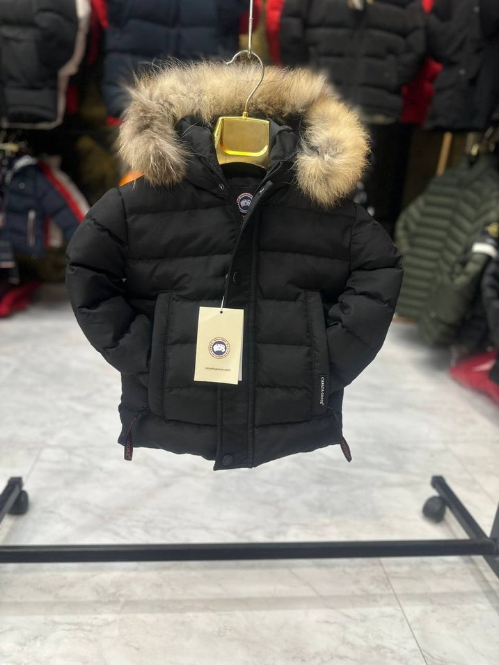 Erkek çocuklar için siyah, kürklü kapüşonlu, notched lapel yakalı, yumuşak fleece kumaştan, baskılı desenli, fitted kesim mont.