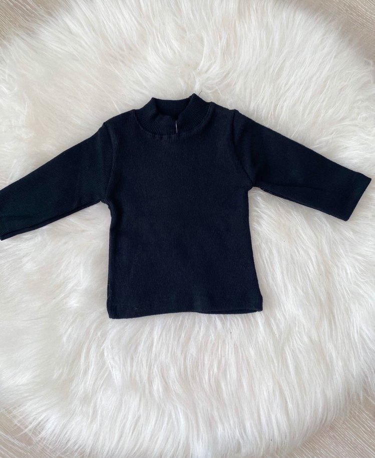 Erkek- kız için siyah boğazlı, uzun kollu, detaylı ve rahat kumaştan üretilmiş fitted