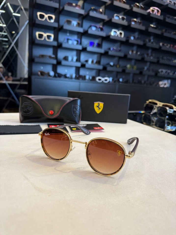 Kahverengi degrade camlı, klasik yuvarlak çerçeveli, Ferrari logosu detaylı erkek güneş gözlüğü. Trendy casual sokak stiline uygun. ️