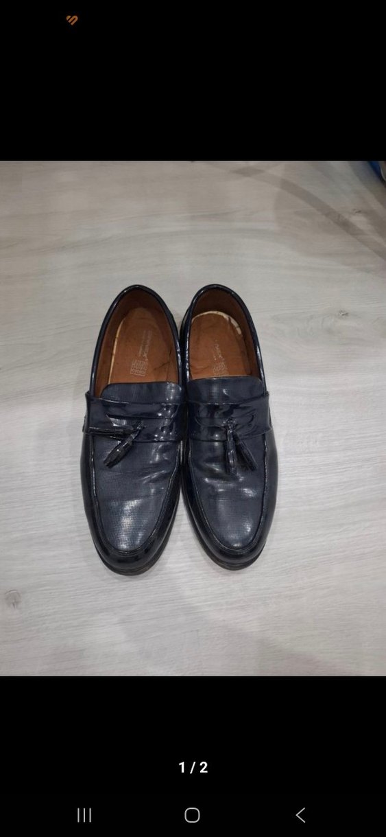 Ofis kullanımı için uygun, tokalı detaylı koyu mavi erkek klasik ayakkabı. Desensiz tasarıma sahip ve kauçuk malzemeden üretilmiştir. taban içinde küçük deformeler mevcut