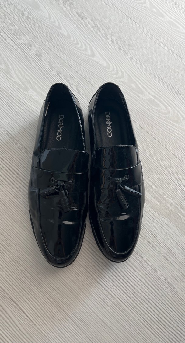Siyah renkli, yılan derisi desenli ve tokalı erkek rugan loafer ayakkabı. Klasik zarafet ve gotik tarzı bir arada sunar. Marka: DERIMOD. 44 numara