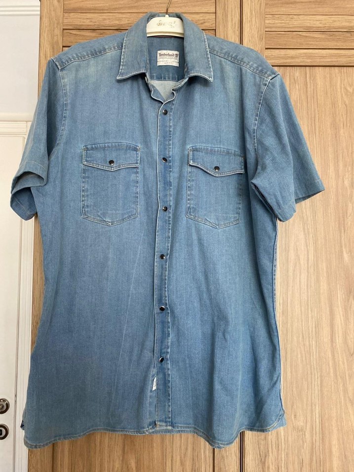 Erkek kot gömlek, kısa kollu ve yakalıdır. Rahat kesimi ve düğmeli önüyle günlük kullanım için uygundur. İki göğüs cebine sahiptir, sade mavi renklidir. hiç giyilmedi