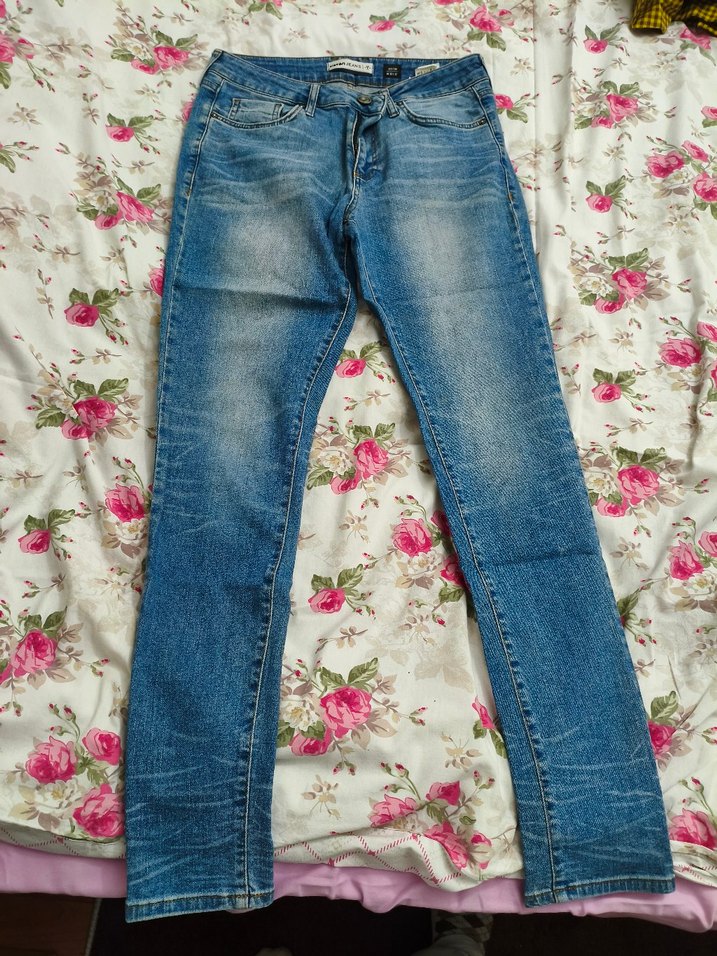 mavi kot pantolon. Normal boy ve batik desenli, rahat günlük sokak stili için uygundur. 30/32 beden