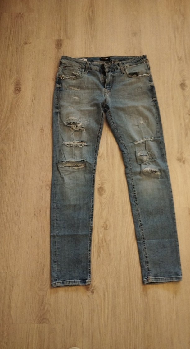 günlük kullanıma uygun Jack and Jones ön diz kısımlarında yırtıklar bulunan skinny lıam erkek kot pantolon