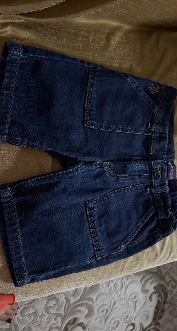 Koyu mavi kot kumaştan, düğmeli ve rahat kesime sahip erkek şort. Sokak stiline uygun, desensiz tasarım.