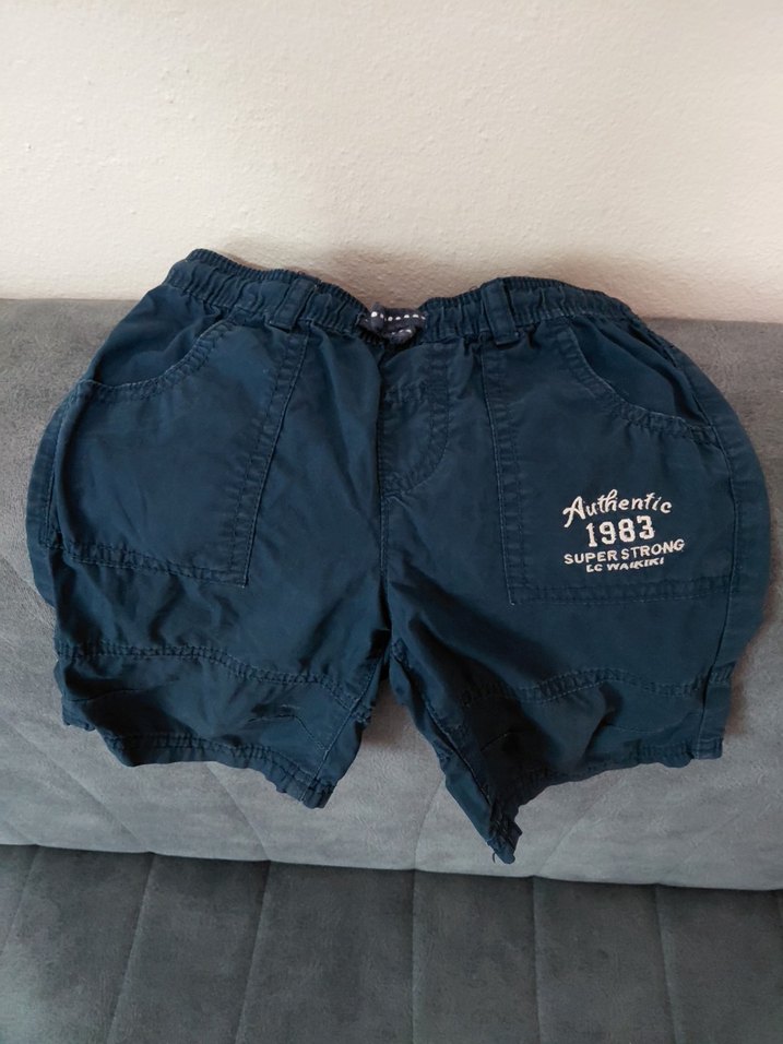 Koyu mavi renkli, düğmeli ve rahat kesim erkek kot şort. Ön cepleri ve "1983 SUPERSTRONG" baskısı bulunur.
