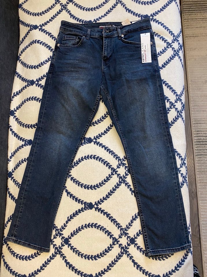 Bedenleri 30-30, hiç kullanılmamış, sıfır, etiketli ürün. Düğmeli tasarıma sahip, lacivert midi uzunlukta erkek kot pantolon. Denim kumaştan, rahat kesim ve günlük kullanıma uygun.