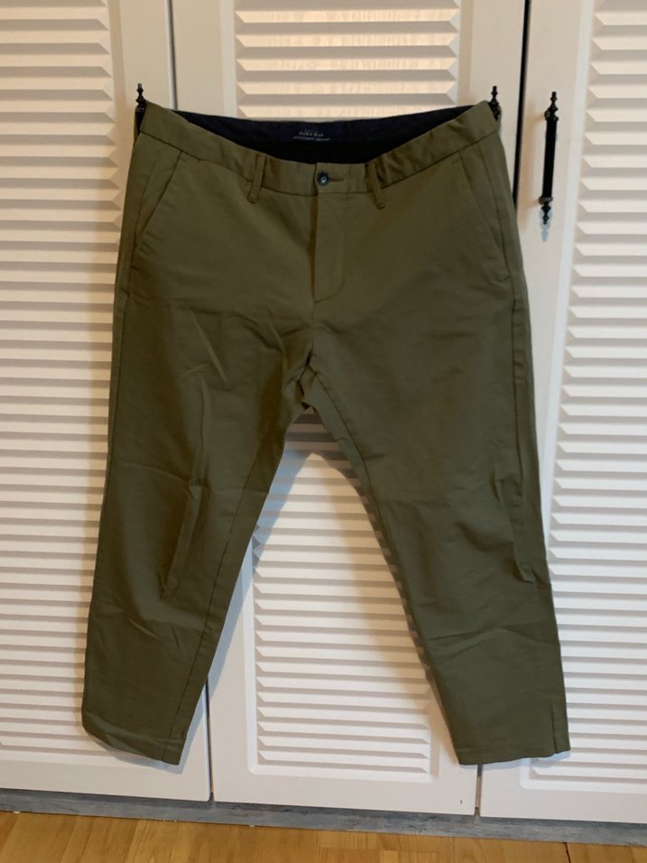Erkekler için regular fit, normal boy ve kemerli tasarıma sahip koyu haki renkte pantolon. Sentetik kumaştan yapılmıştır, günlük rahat kullanım için uygundur.