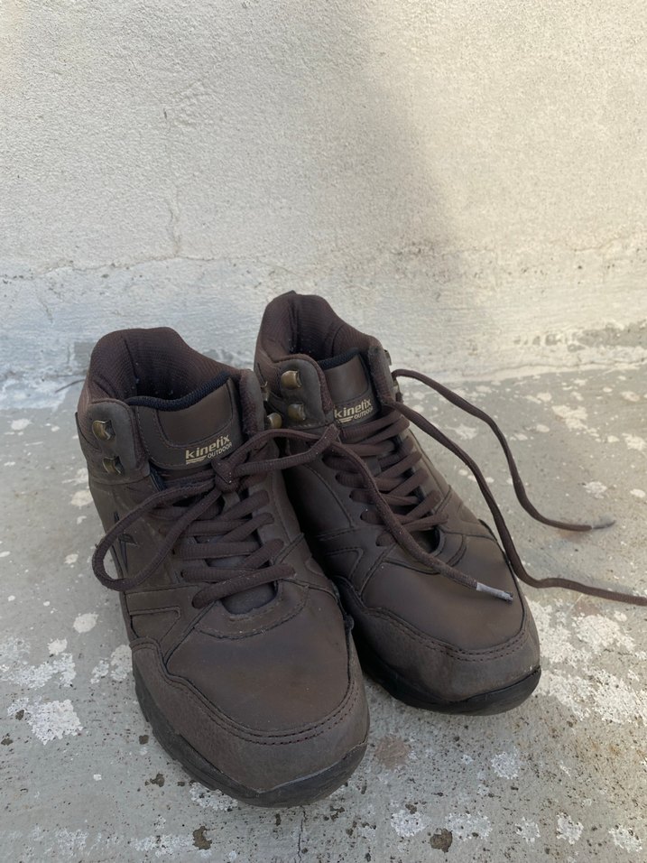 Koyu kahverengi, kauçuk tabanlı ve tokalı erkek dış mekan ayakkabısı. Günlük kullanıma uygun, desen içermeyen rahat tasarım.