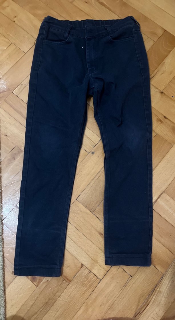 Erkekler için koyu mavi denim, normal boy ve regular fit pantolon. Kemerli, sokak stili ve günlük kullanım için uygundur.