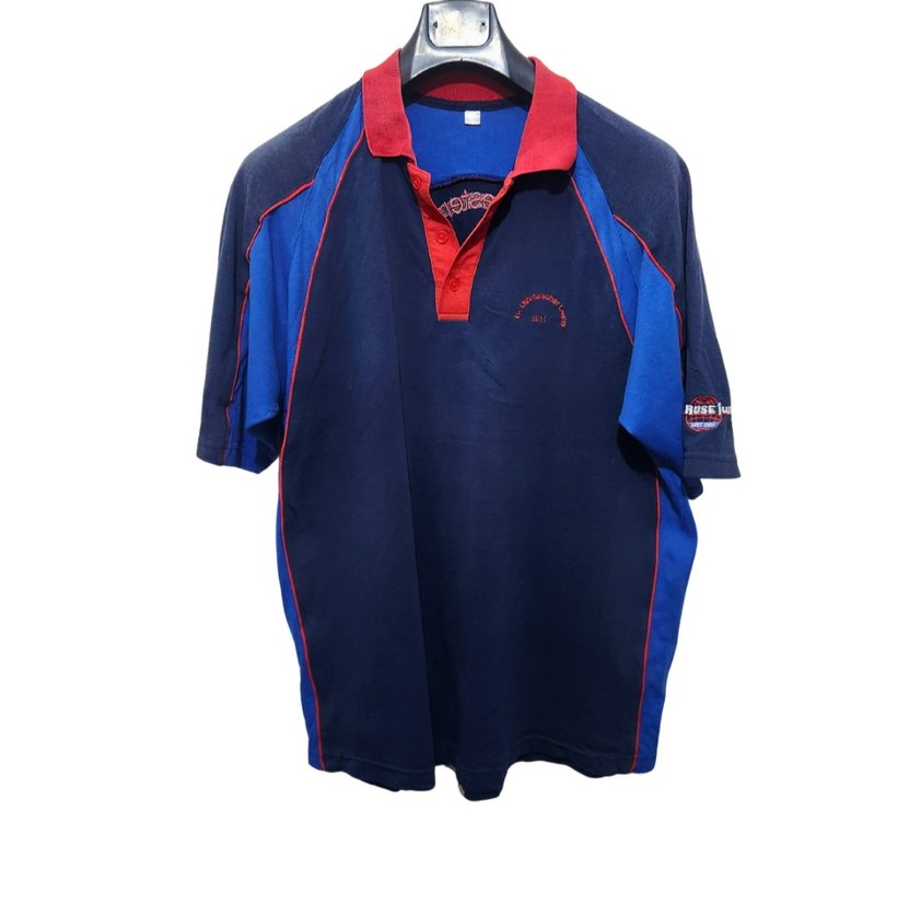 Erkekler için düğmeli yaka ve kısa kollu polo tişört. Rahat kesimli, koyu mavi ve kırmızı renklerde, baskılı detaylı, spor ve sokak stili için uygun. ♂️ 78×61