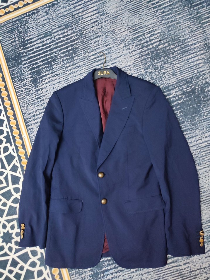 Koyu mavi renkte, düğmeli, regular fit erkek takım ceketi. Notch yakalı, uzun kollu ve klasik, desen içermeyen tasarıma sahiptir. Ofis ve iş ortamları için uygundur. orjinal Gucci marka muhteşem çeket 48 beden hiç giyilmedi sıfır yakından resimlerden çok daha güzel