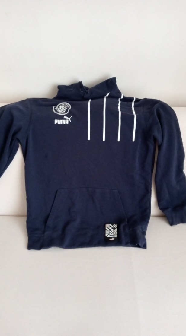 Erkekler için koyu mavi, uzun kollu, düğmeli ve baskılı sweatshirt. Spor ve sokak tarzına uygun, dar kesim ve ön cepli.