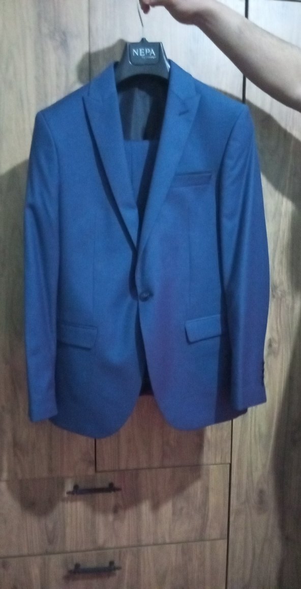 Erkekler için koyu mavi renkte, klasik yaka ve düğmeli ön kısmı ile takım elbise. Ofis ve iş ortamları için uygun, uzun kollu ve regular fit.ürün 5 sene önce alındı sadece 1 kere giyildi beden 48 üçüde 48.