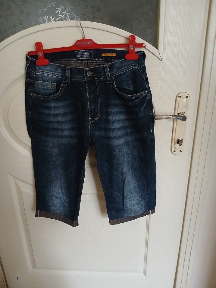 Erkekler için koyu mavi denimden yapılmış, kemerli ve slim kesim mini kot şort. Günlük kullanım için uygun, rahat ve şık sokak stili kusuru yoktur