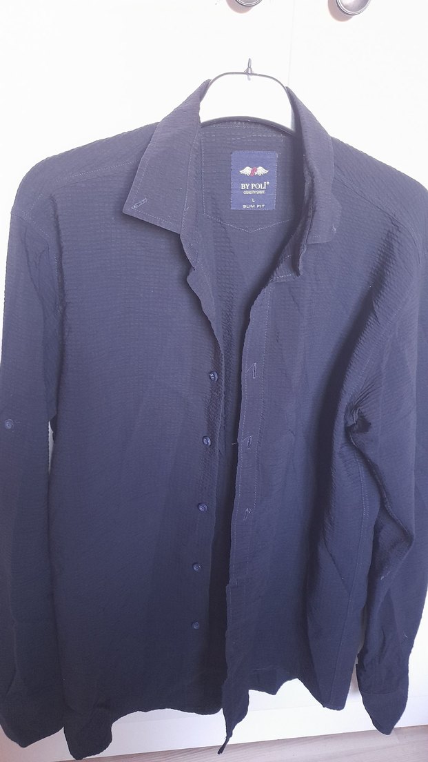 Erkekler için koyu mavi renkte, keten kumaştan yapılmış, düğmeli ve uzun kollu gömlek. Normal boyda ve regular kesimdir, ofis ve günlük kullanıma uygundur.