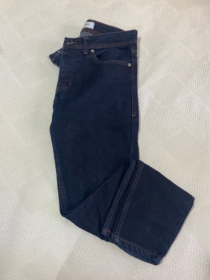 Koyu mavi midi boy, regular fit kot pantolon. Desensiz tasarımı ve rahat kesimiyle günlük şıklık sunar.
