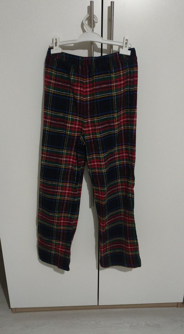 Koyu renkli çok renkli ekoseli, bol kesim ve pileli erkek pijama altı, rahat ve gevşek bir stil sunar.