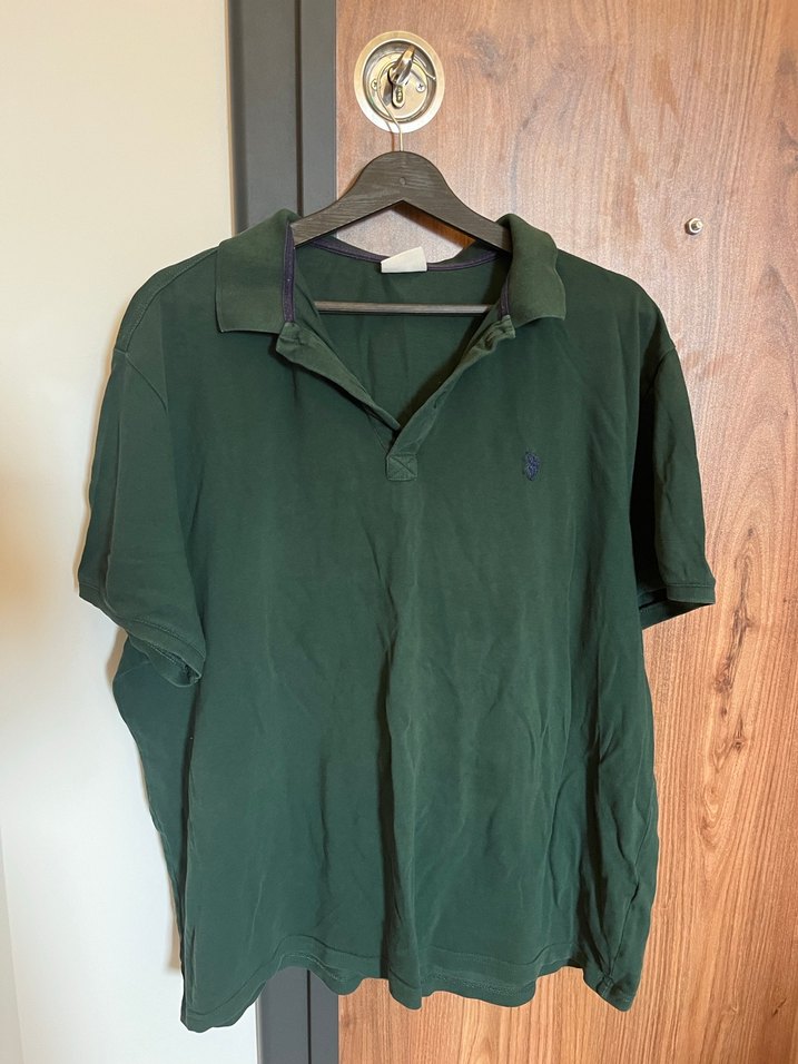 Koyu yeşil renkte, keten kumaştan yapılmış, yakalı ve kısa kollu erkek polo tişörtü. Rahat bir kesime sahip olup günlük kullanıma uygundur.
