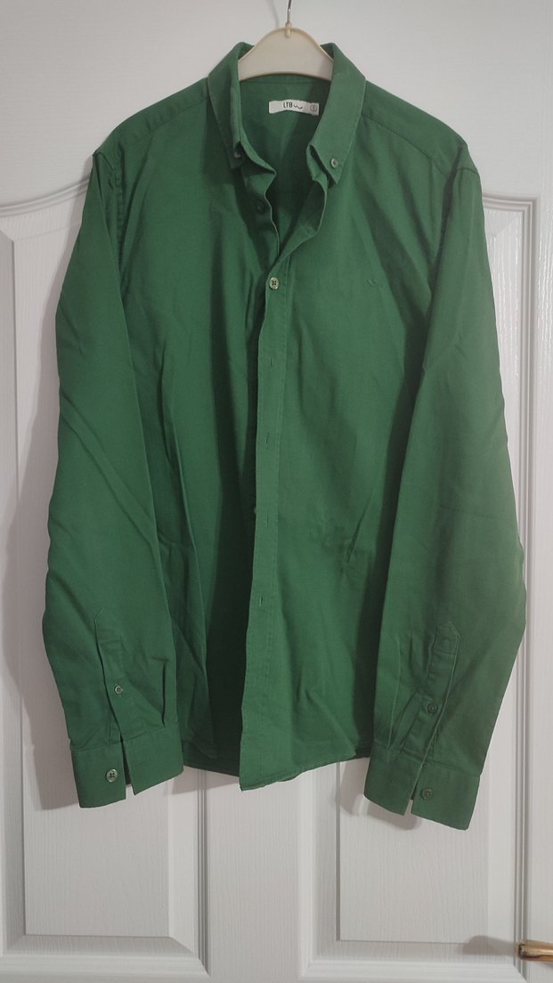 Koyu yeşil renkte, keten kumaştan, uzun kollu erkek gömleği. Normal kesim ve ofis kullanımı için uygundur. En 48 boy 70