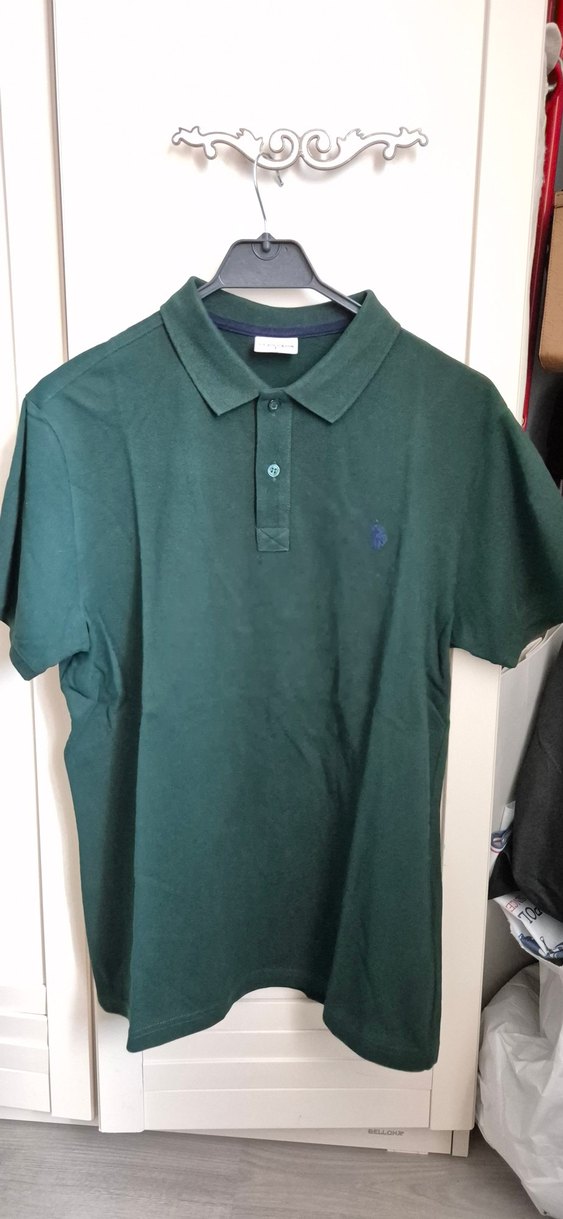 Erkekler için koyu yeşil renk, kısa kollu, düğmeli yakalı, regular fit, sentetik kumaştan yapılmış günlük sokak stiline uygun polo tişört.
