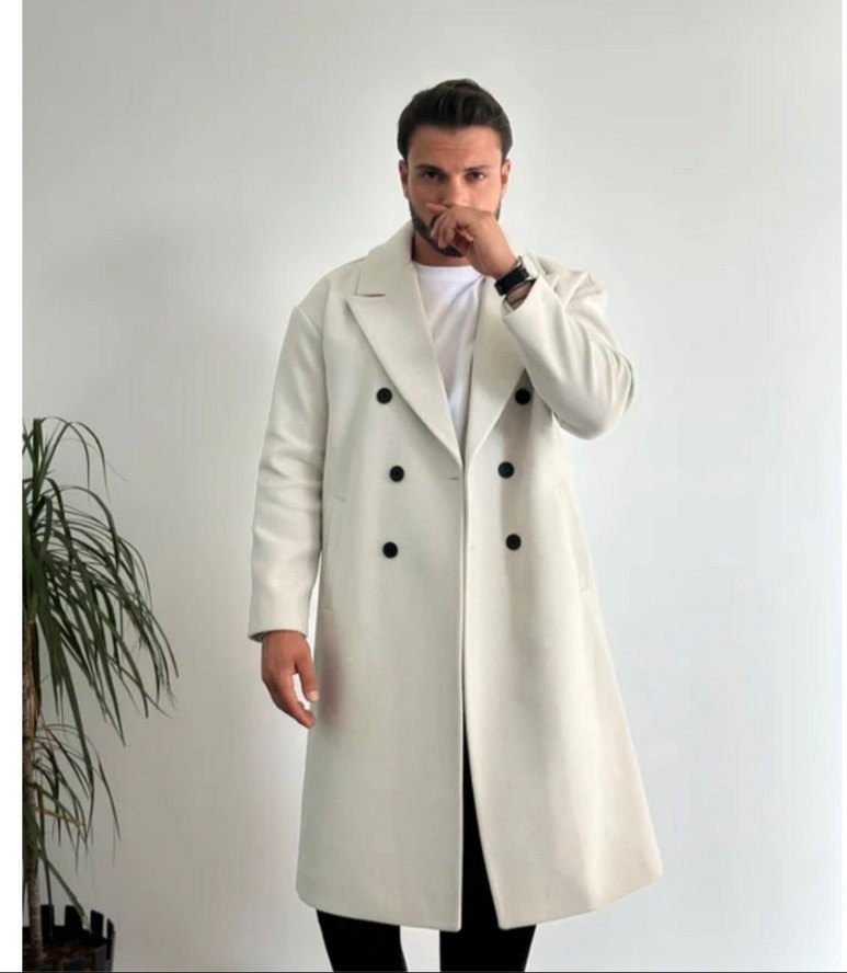Erkekler için uzun, düğmeli, yumuşak ve sıcak kumaştan yapılmış bej renk klasik kaban. Normal kesim ve uzun kolludur, günlük rahat kullanıma uygundur butik ürunudur marka temsilidir M bedendir ürun birkez giyildi en ufak bir deformasyonu yoktur
