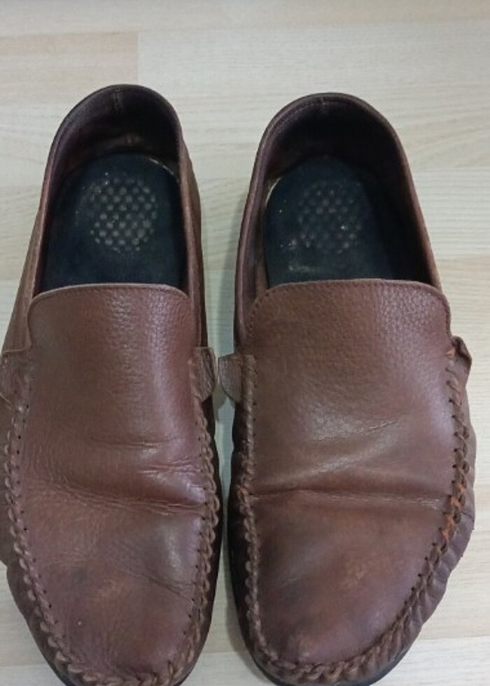 Kahverengi erkek ayakkabı, kullanılmış ürün.42 numara. Deformiteler mevcut